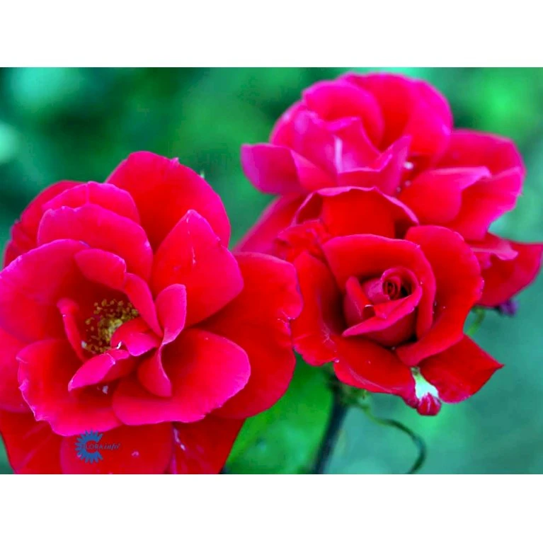 Rød. I udspring med fløjlsagtigt skær. Stor, velformet fyldt blomst med ualmindeligt dejlig duft. 25-40 kronblade. Op til 15 cm i diameter.