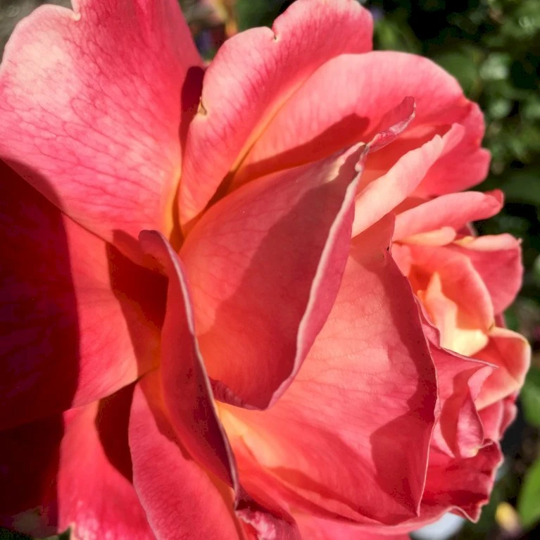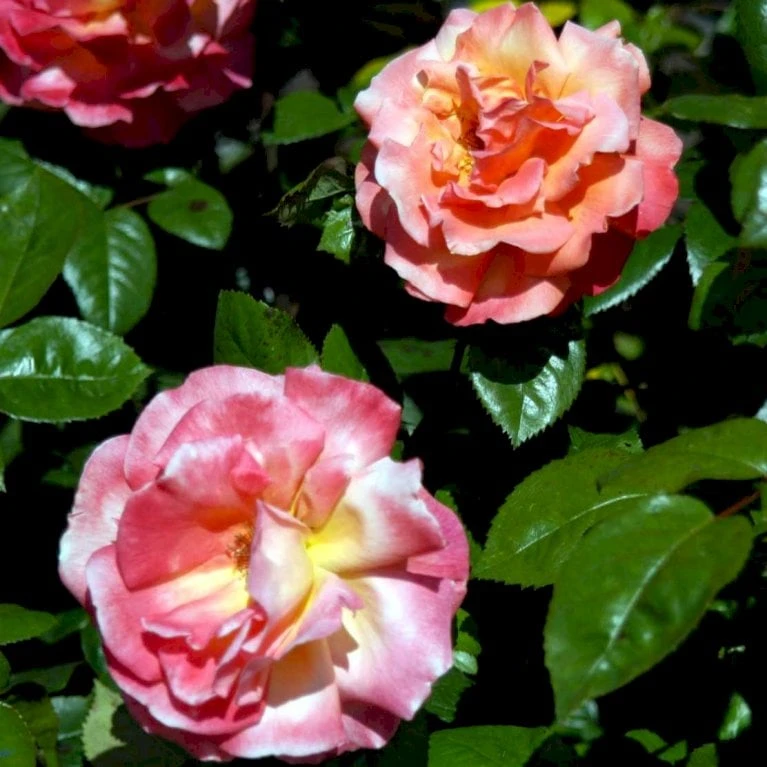 Farvevekslende rose, changerende mellem bronze, orange, grenadine og pink. Meget stor, velformet fyldt blomst med kraftig og dejlig duft. 25-40 kronblade. Op til 15 cm i diameter.
